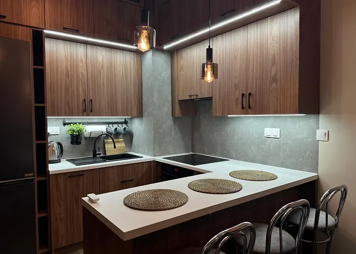 Помешкання оснащене повністю обладнаною кухнею з такими зручностями, як електрочайник, холодильник і духовка. Для зручності гостей в апартаментах є кавоварка. Гості мають великий вибір сусідніх ресторанів, включаючи ресторан Brda Restauracja, який знаходиться всього лише за 8-хвилинної прогулянки цього помешкання. Апартаменти розташовані у межах пішої доступності від залізничного вокзалу Bydgoszcz Główna Main.
